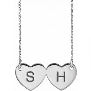 Sterling Silver Engravable Double Heart 17″ Necklace