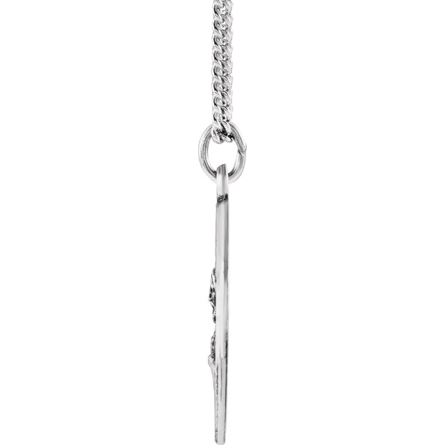 Sterling Silver 18 mm Round Sacred Heart of Jesus 18″ Necklace